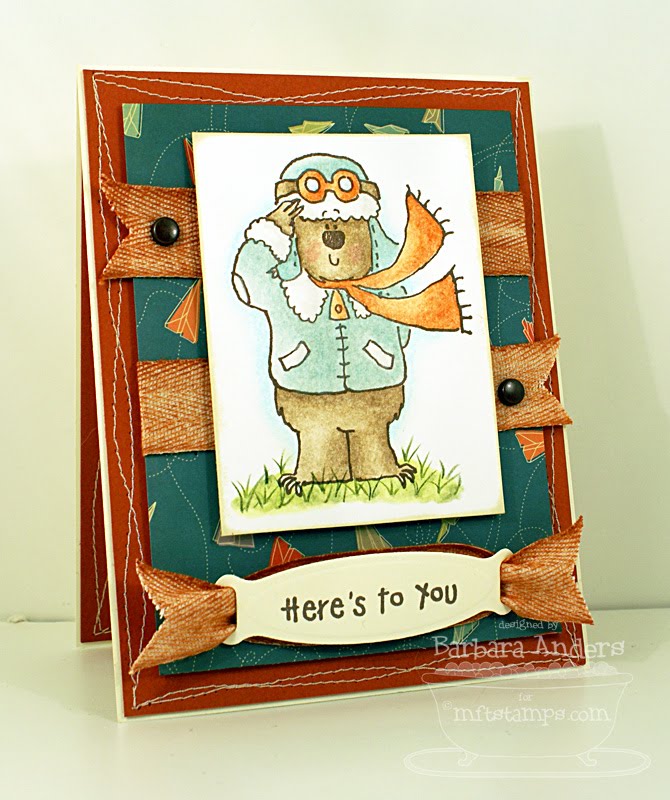 I used white cardboard for my clouds--you know, the kind that comes in the back of certain DSP? Then I brushed it with Weathered Wood Distress ink to give it a little "rainy" look. And, of course, I used both scallop dies for the border. I love them!!!!!!!!!! Other MFT products are: Glittered Garnishes - Summer, Birthday Blast ribbon, Scoop o'Buttons - Summer Collection, Red Hot card stock, and Stephanie Fizer Papers - Summer Collection. For all of the dies, I used my normal Cuttlebug sandwich: A plate, B plate, card stock, die with the cutting edge down, C plate (I know my B and C plates are reversed as to the recommendations but this is how I prefer them) and I ran it through twice. I don't know if that was necessary or not, I just did it to be sure. They cut like a hot knife through buttah, peeps!