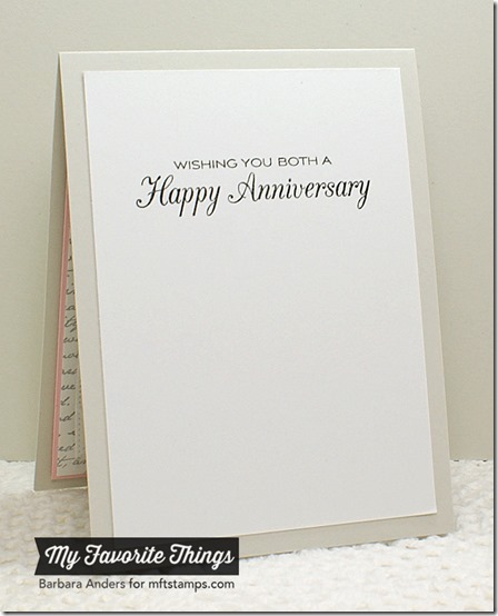 I’m not ready to put away the new release products just yet, so I used them again for today’s sketch. I suspect you’ll be seeing more of them after today, too ;-) What a great release this was (aren’t they all?!)! This card started with a Grout Gray card stock base. On a piece of Sweet Tooth card stock I stamped Romantic Script Background with Encore Silver ink, matted it with Bubblegum card stock, and popped it up on foam. Next I cut Pierced Fishtail Flags STAX Die-namics from Sweet Tooth card stock and stenciled on some embossing paste with MPD Graduated Hearts stencil and adhered it to the base after it dried. Then I stamped the sentiment, from LJD Together Forever, on Black Licorice card stock with Sweet Tooth pigment ink and heat embossed with white embossing powder. After I popped it up on foam, I added a couple enamel hearts and a metallic silver card stock Scrolled Flourishes Die-namics accent.